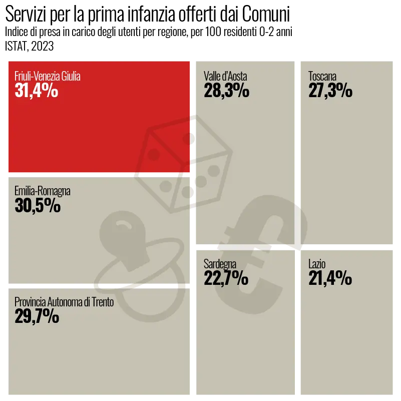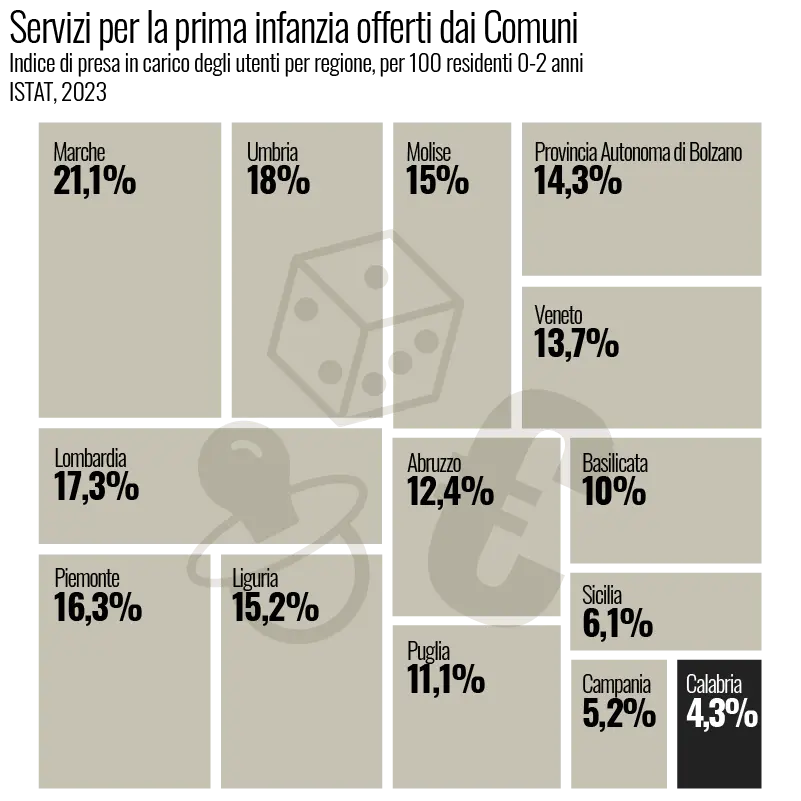 Per il dominio Servizi sono stati utilizzati tre indicatori. I servizi per la prima infanzia offerti dai comuni,