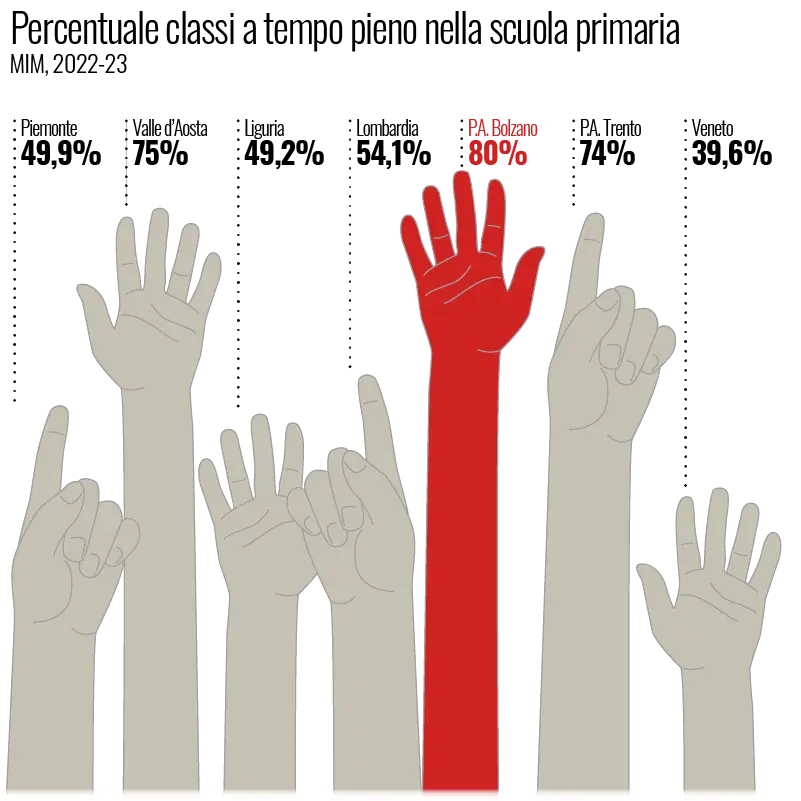 90% nelle Province Autonome di Bolzano (90%) e Trento (95%).