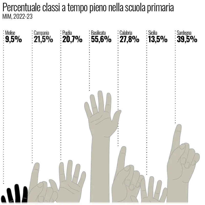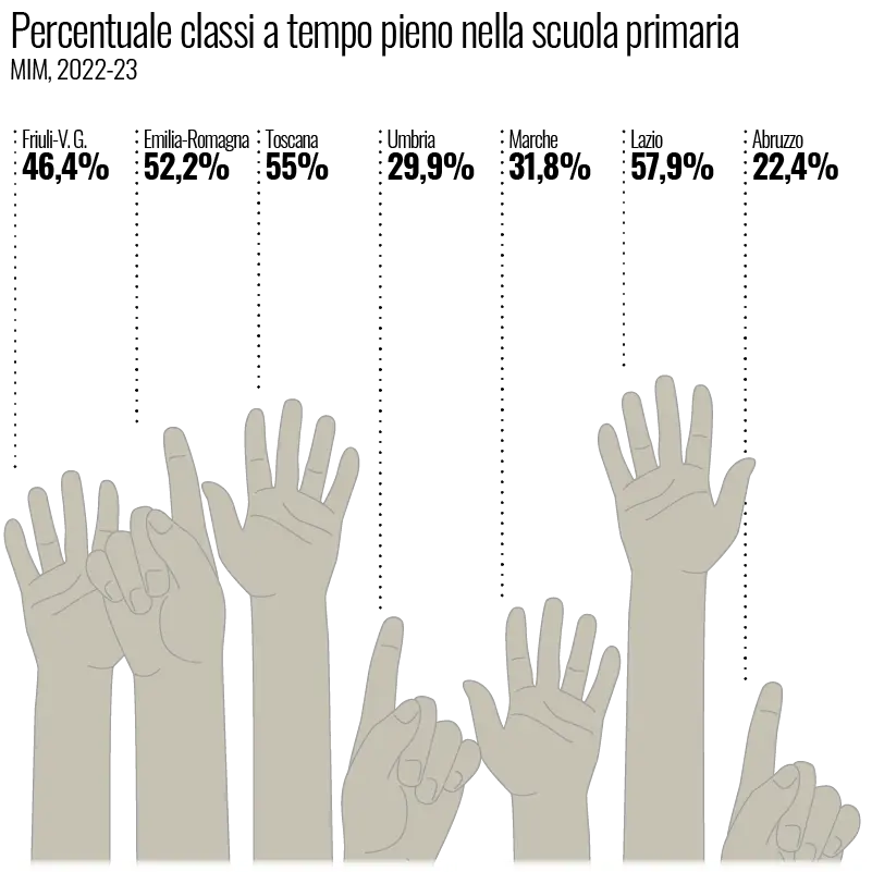 La percentuale di classi a tempo pieno nella scuola primaria, con valori più elevati nelle Province