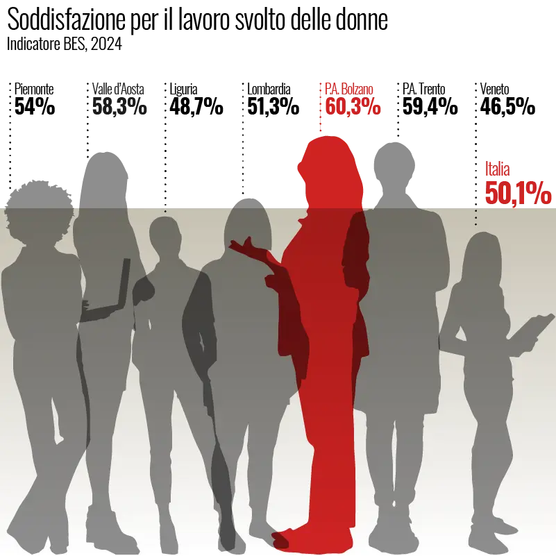 lavoro svolto, che raggiunge i valori massimi nelle Province Autonome di Bolzano (60,3%) e Trento