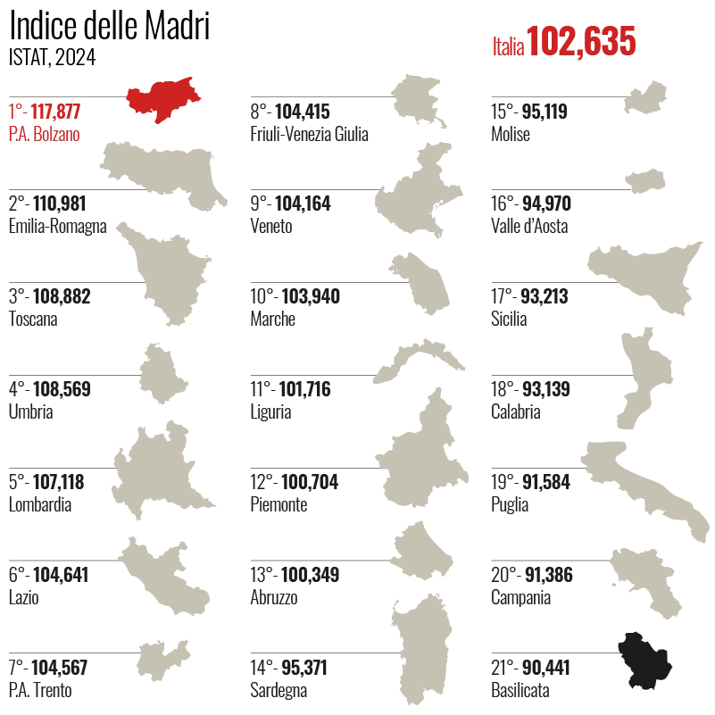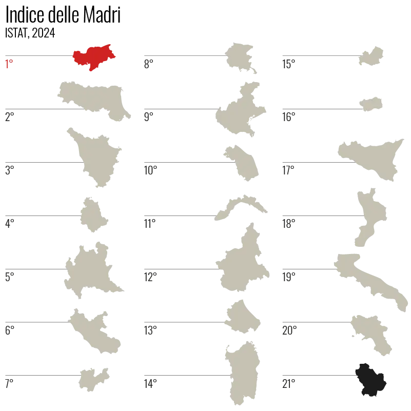 Il Mother’s Index è un indice composito che, grazie alla collaborazione con l’ISTAT, mette insieme 14