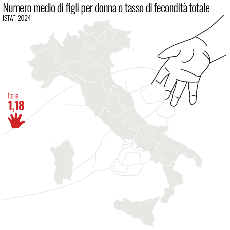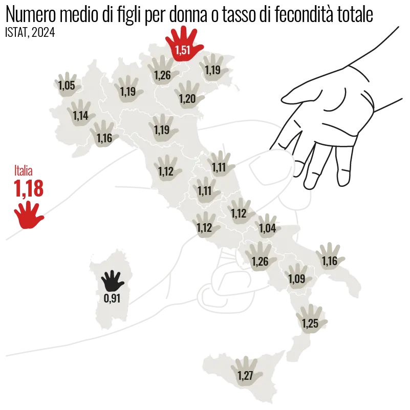 mostra i valori più bassi in Toscana (1,43), Molise (1,78), Umbria (1,83) e Veneto (1,95).