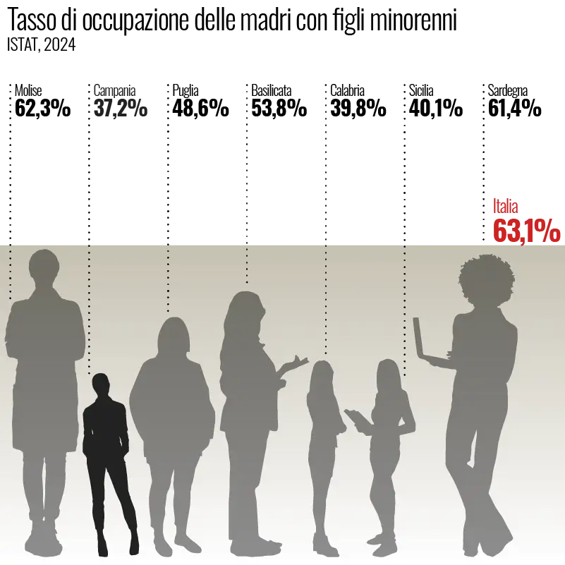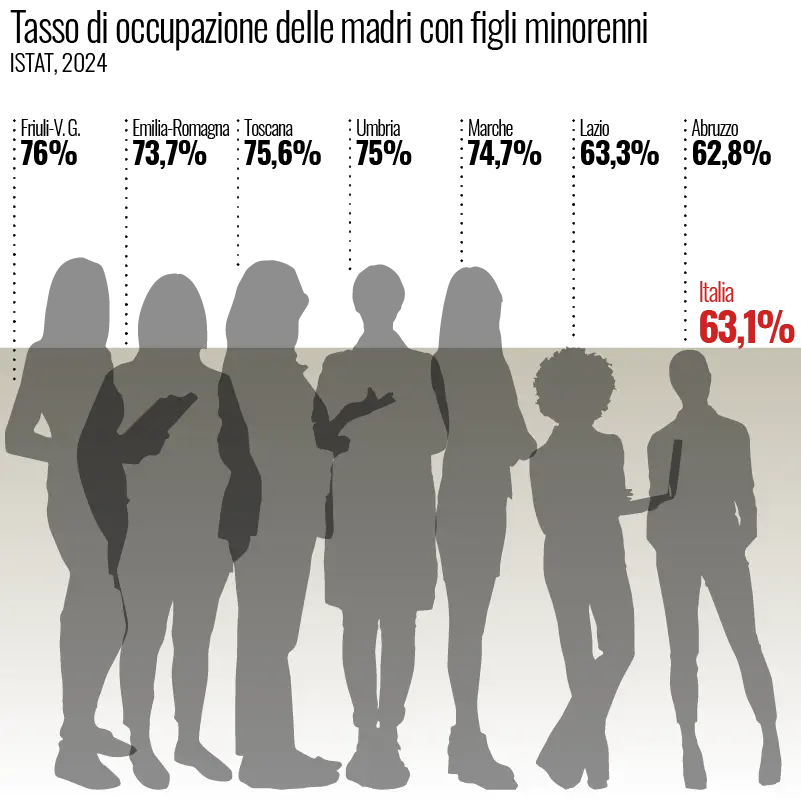Per il dominio Lavoro gli indicatori considerati sono quattro. Il tasso di occupazione delle madri con figli