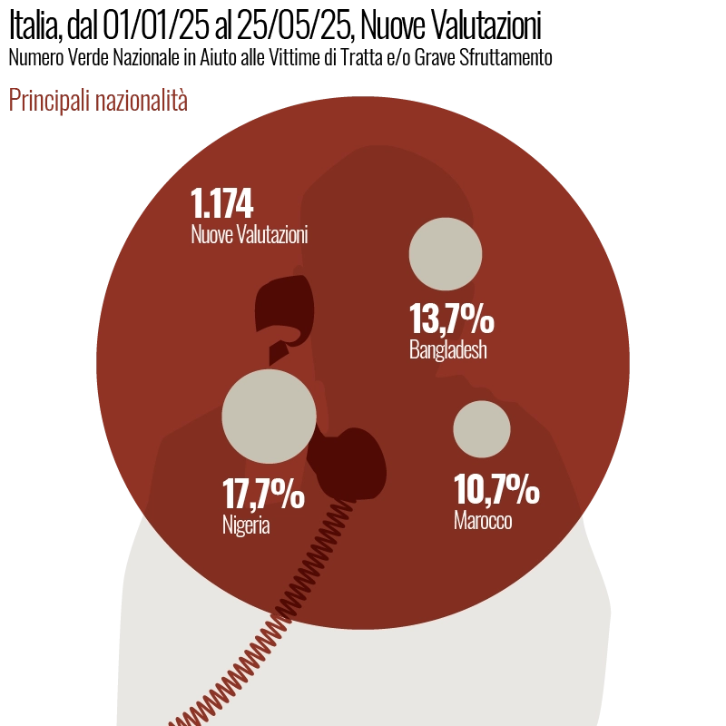 Numero Verde Antitratta, nel 2024 sono state valutate 2.853 persone e i minorenni costituiscono il