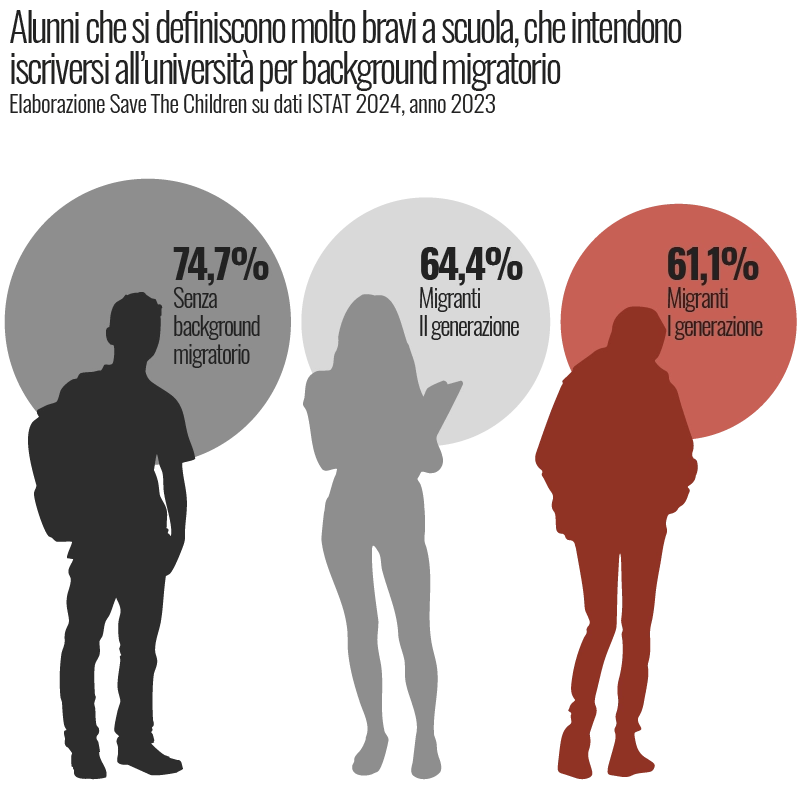 seconde generazioni il dato scende al 19,4%, mentre tra i ragazzi italiani in difficoltà economica è al