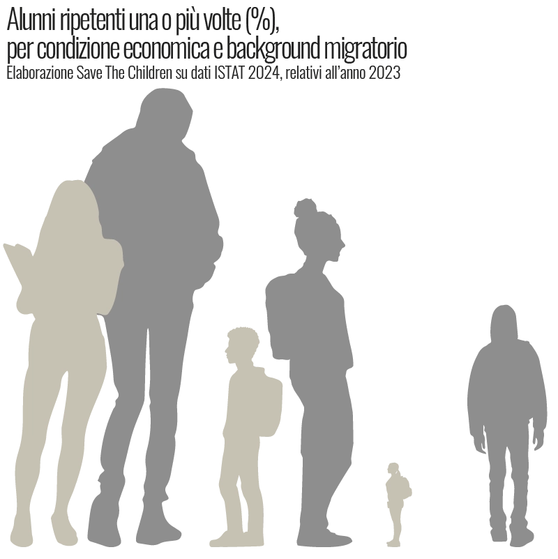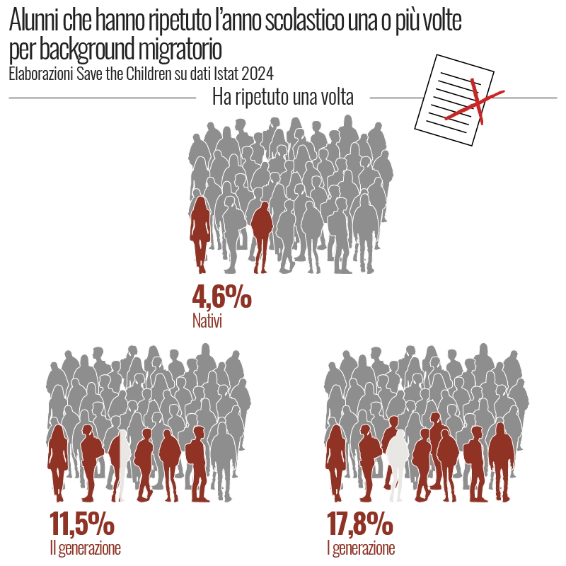 Tra i ragazzi nati all’estero da genitori stranieri, il 3,1% ha ripetuto più volte l’anno e quasi 1 su 5 (17,8%)