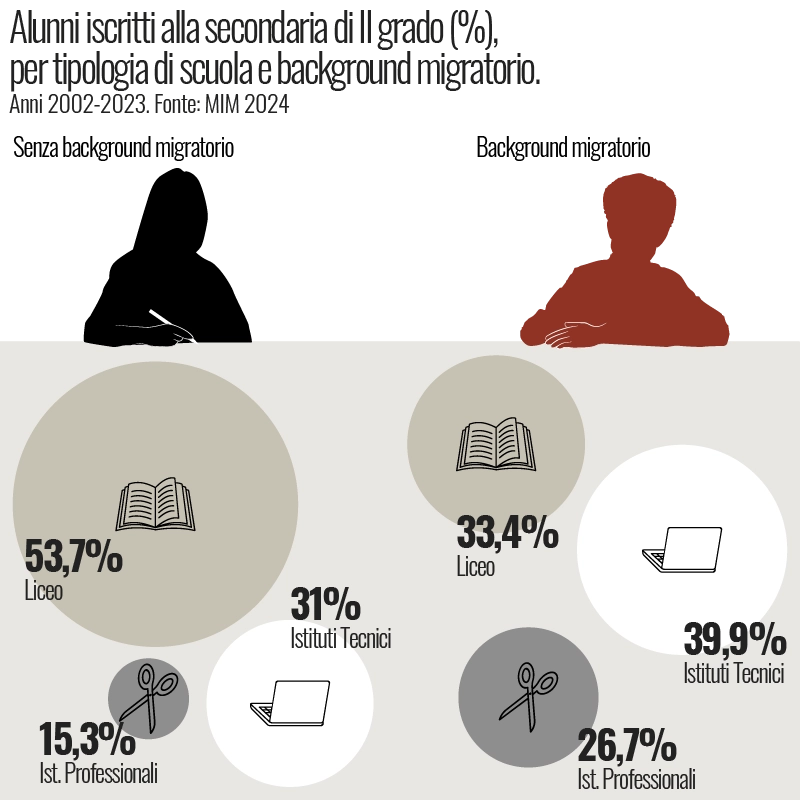 studenti con background migratorio sono più numerosi negli istituti tecnici e professionali, mentre si